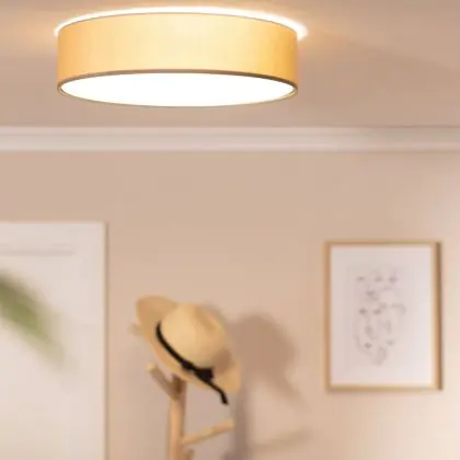 Bright Choice Lampada Da Soffitto A LED Il Giro Tessuto Marrone | 500mm - Adatto per 3x E27 – Max 40W