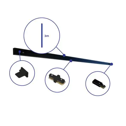 Bright Choice Rail Set 1-Fase 3 Metro Nero | incl. Tappo Di Chiusura, Connettore di Alimentazione e L-Connettore