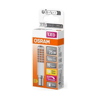 La Confezione Multipack 4x Osram Speciale T Slim LED B15d Chiara 8W 1055lm - 827 Bianco Molto Caldo | Dimmerabile - Sostitutiva 75W è la sostituzione perfetta per la tua lampada convenzionale 75W B15d. Sostituire con il LED ti offrirà molti vantaggi.