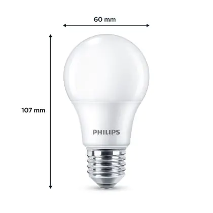 Grazie al suo consumo di soli 5W e la sua lunga durata di 15000 ore, puoi risparmiare fino al 60% di energia e con costi di manutenzione abbattuti. Le tradizionali lampadine a incandescenza durano solamente 1000 ore. Installare la lampadina LED è veramente facile, basta svitare la vecchia lampadina E27 ( una volta fredda ) e avvitare successivamente la nuova lampada di Philips con forma Pera nel portalampade. Questo prodotto di Philips è di qualità professionale.