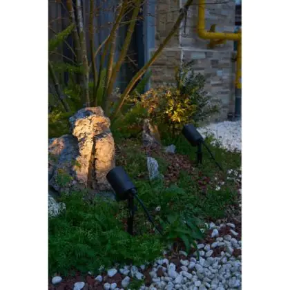 Il design a picchetto consente un facile inserimento nel terreno. Il cavo da 2 metri con spina europea semplifica il collegamento alla rete elettrica.