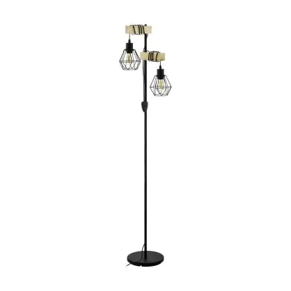 Eglo Lampada da terra Townshend 5 Acciaio Legna Nero | IP20 - Adatto per 2x E27