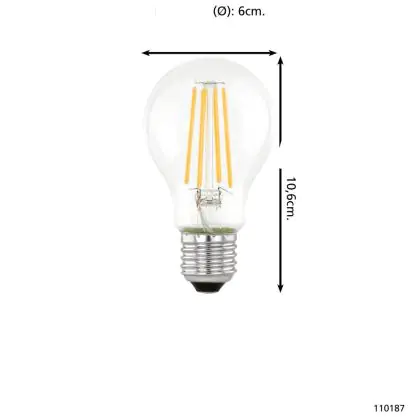 Descrizione Eglo LED Pera E27 Filamento Chiara 7.3W 806lm - 830 Luce Calda - | Sostitutiva 60W