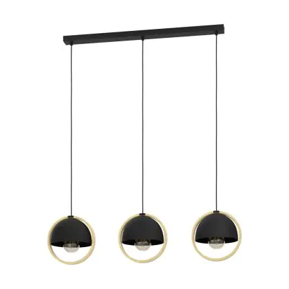 Eglo Luce Pendente Callow Acciaio Legna Nero Marrone | IP20 - Adatto per 3x E27