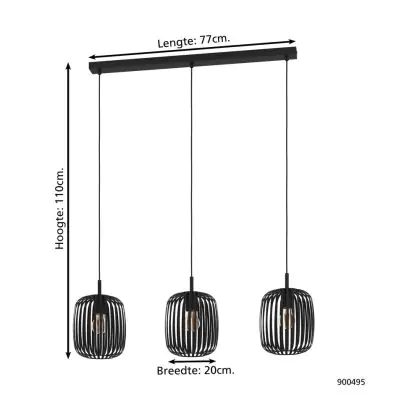 Eglo Luce Pendente Romazzina Acciaio Nero | IP20 - Adatto per 3x E27