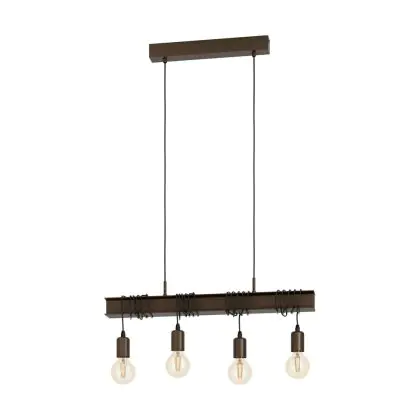 Eglo Luce Pendente Townshend 4 Acciaio Marrone | IP20 - Adatto per 4x E27
