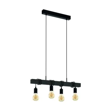 Eglo Luce Pendente Townshend Acciaio Legna Nero | IP20 - Adatto per 4x E27