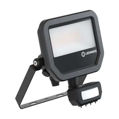 Ledvance Proiettore LED Aluminium Nero 17W 2200lm 100D - 830 Luce Calda - | IP65 - Sensore Di Movimento E Luce - Simmetrico